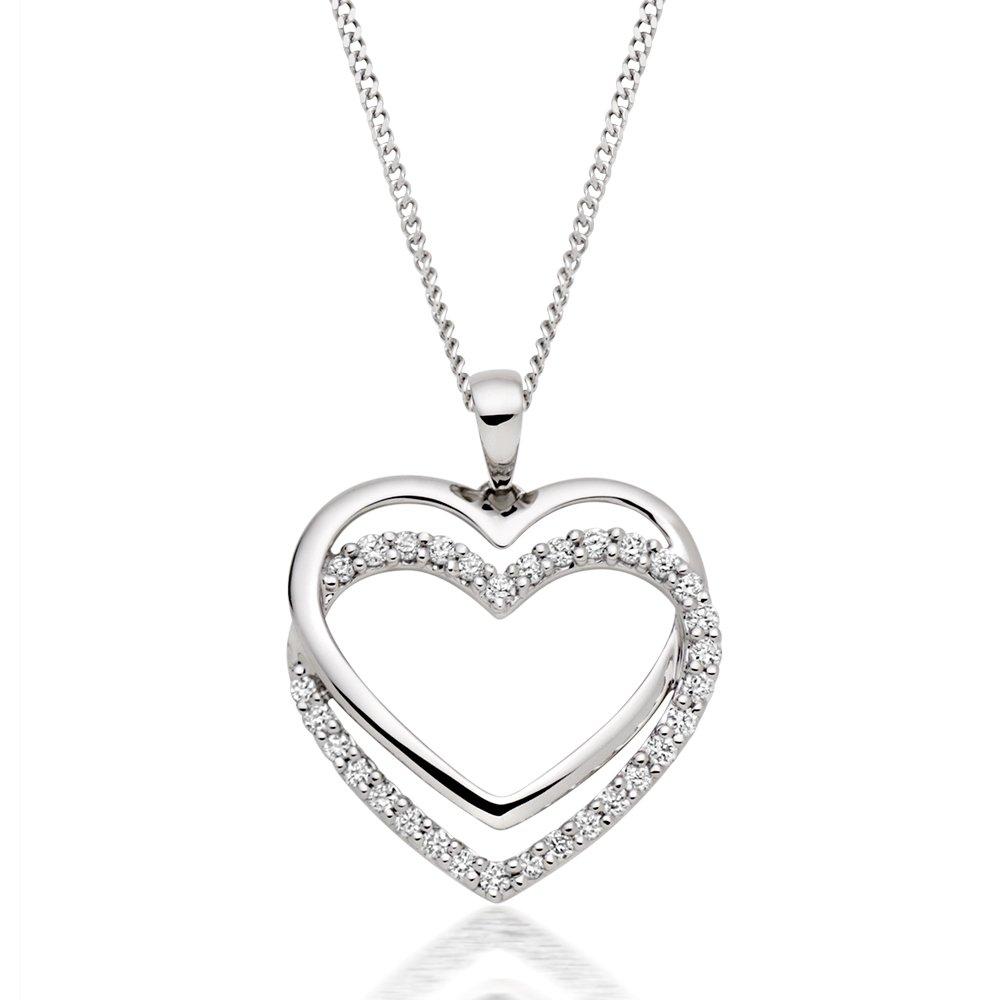18ct White Gold Diamond Hearts Pendant 0008204 Beaverbrooks The Jewellers